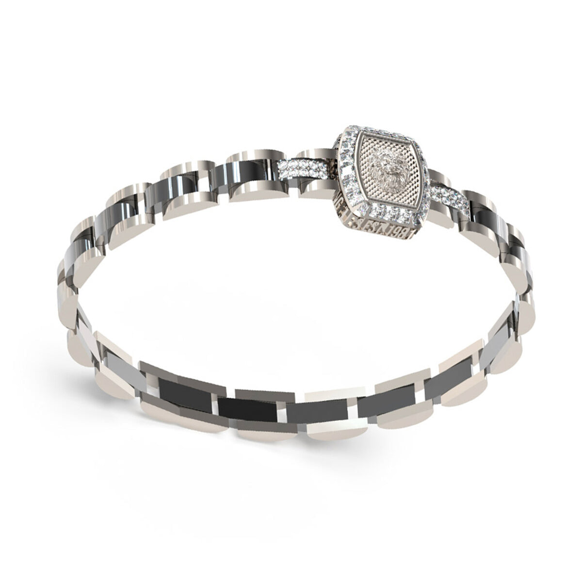 Brazalete para Caballero Lion King  su material es de acero inoxidable color plateado*Nuestros productos están hechos de una tecnología que evita las reacciones alérgicas.*Las piezas de joyería se limpian con un paño suave o líquido especial.*Código de referecia: JUMB05003JWSTBKT/U